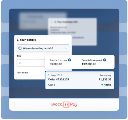 Spread the cost of orders up to £15,000 £30,000 with iwocaPay